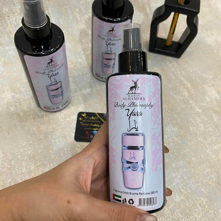 بادی اسپلش زنانه یارا صورتی الحمبرا 250 میل عطری خاص و پرطرفدار، مناسب بانوان، مرطوب کننده پوست با ماندگاری و پخش بو بالا و رایحه گرم و شیرین و ملایم و عدم ایجاد لکه روی لباس می باشد