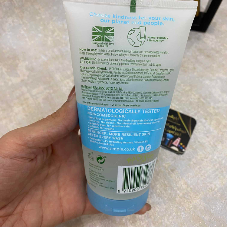 🎗️این ژل شوینده صورت سیمپل حاوی ملکول های میسل جهت جذب ملایم آلودگی و ناخالصی های پوست است